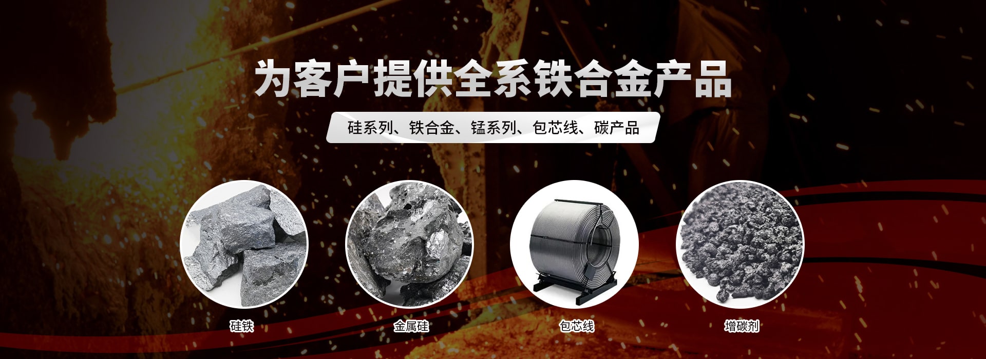 冶金耐材:硅系列、鐵合金、錳系列、包芯線、碳產品五大系列產品及技術服務。